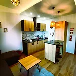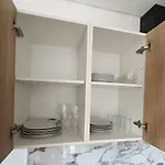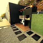 Deze gesitueerde in Calheta 26 Steps Villa beschikt over koffie- en theevoorzieningen, een koelkast, een oven in een kitchenette.